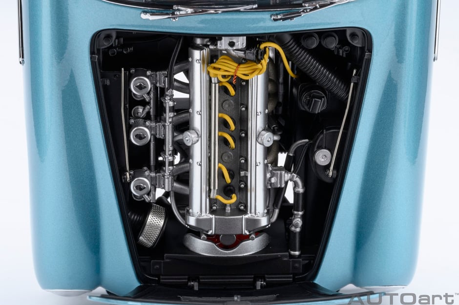 軽合金製4リッター直列6気筒DOHCエンジンを忠実に再現。各金属の質感の違いも塗装で塗り分け、細かなコード類も再現しています。