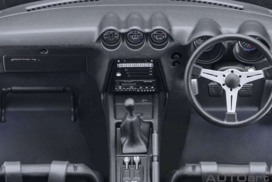 ドア・ボンネットなどのフル開閉ギミックは、オートアートのモデルカーの特徴であり大きな魅力です。「オートアート・コンポジットダイキャストモデル」製法による高い剛性と薄くシャープなボディパネルが正確な開閉を可能にしました。ギリギリまでチリのあったそのボディスタイルは、全てのパネルを閉じた時にはまるで開閉が無いのかと見間違うほどの完成度です。